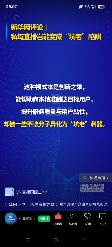 - 監管盲區:私域直播的封閉性導致虛假宣傳、偽造交易數據等行為難以取證,43.91%的消費者曾遭遇劇情式營銷陷阱。